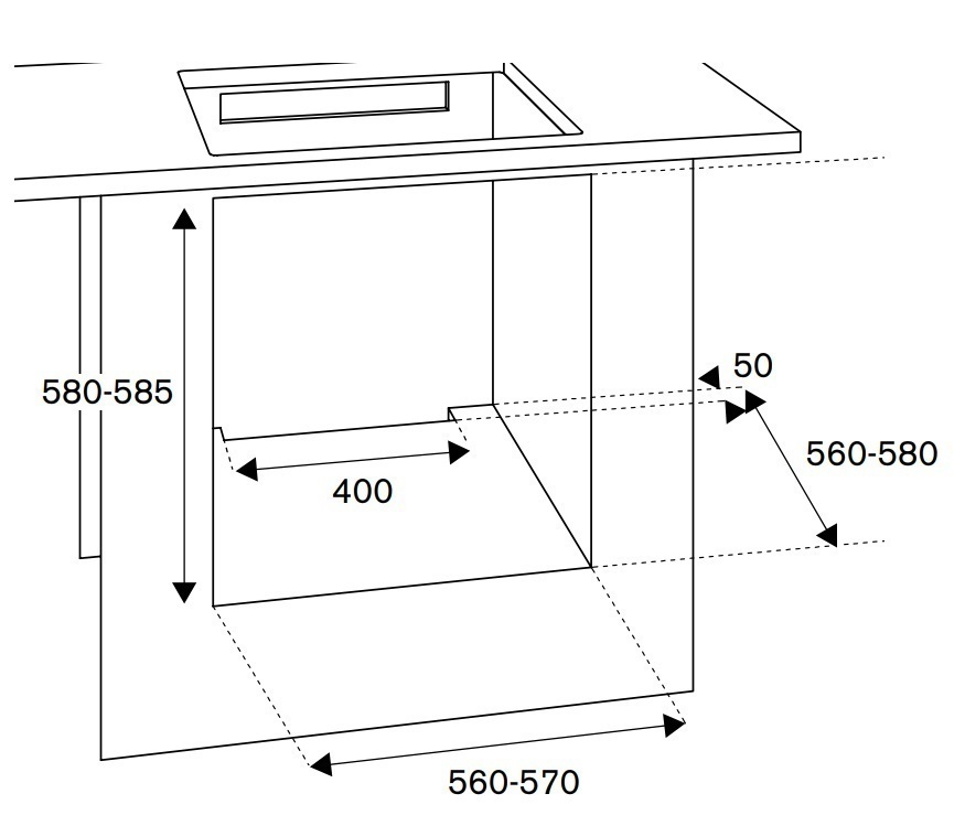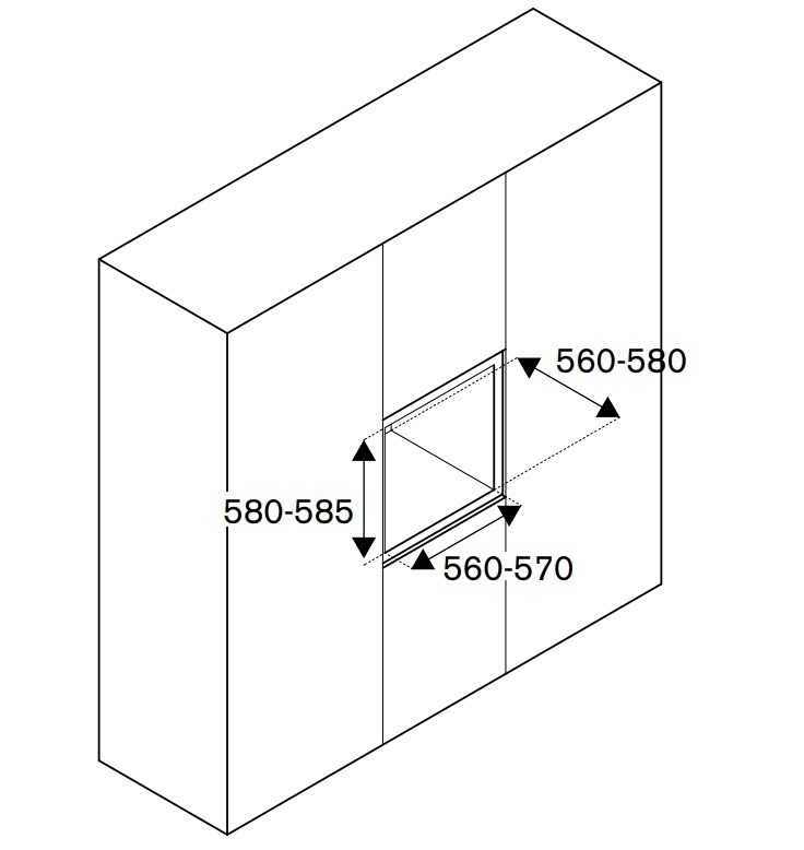 - Габариты ниши для встраивания (ВхШхГ): 580-585x560-570x560-580 мм
