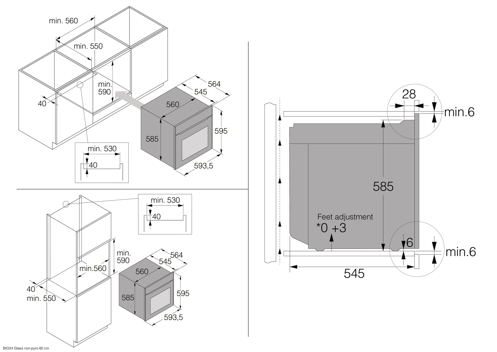 - Размеры ниши (ВхШхГ): 590х560х550 мм