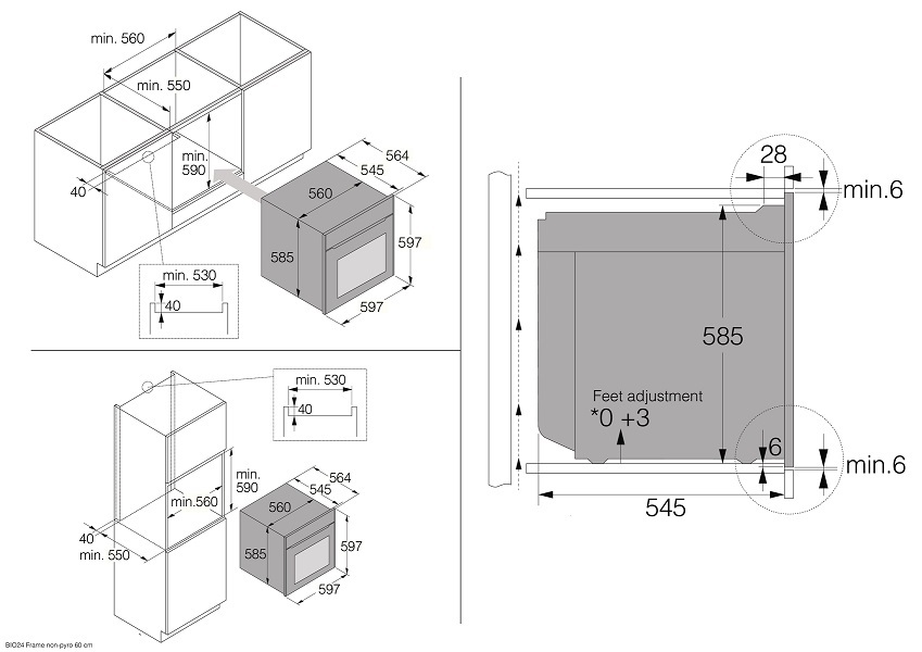 - Габариты ниши для встраивания (ВхШхГ): 590х560х550 мм