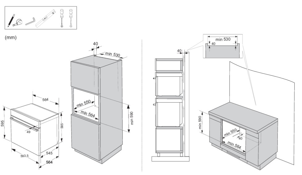 - Размеры ниши (ВхШхГ): 590х564х550 мм