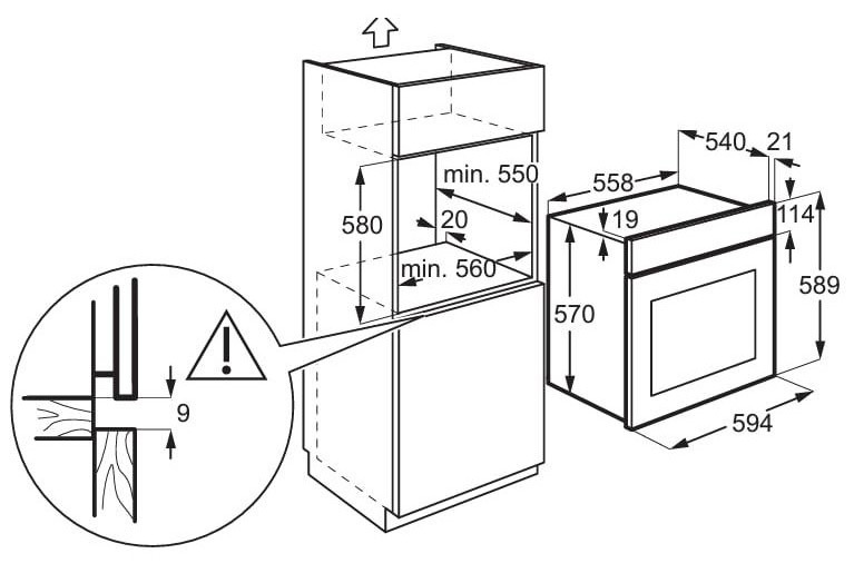 - Размеры ниши для встраивания (ВхШхГ): 600x560x550 мм