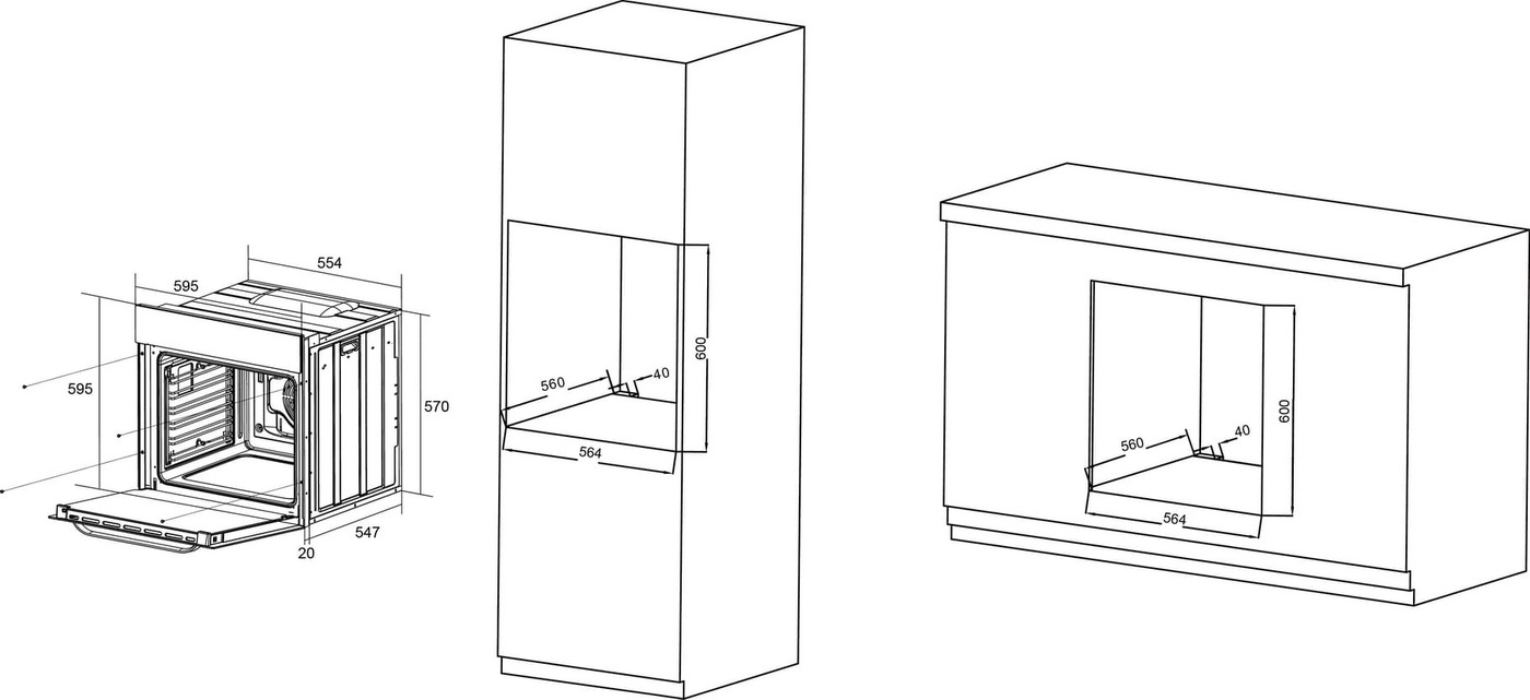 - Габариты встраивания (ВxШxГ): 600x564x560 мм