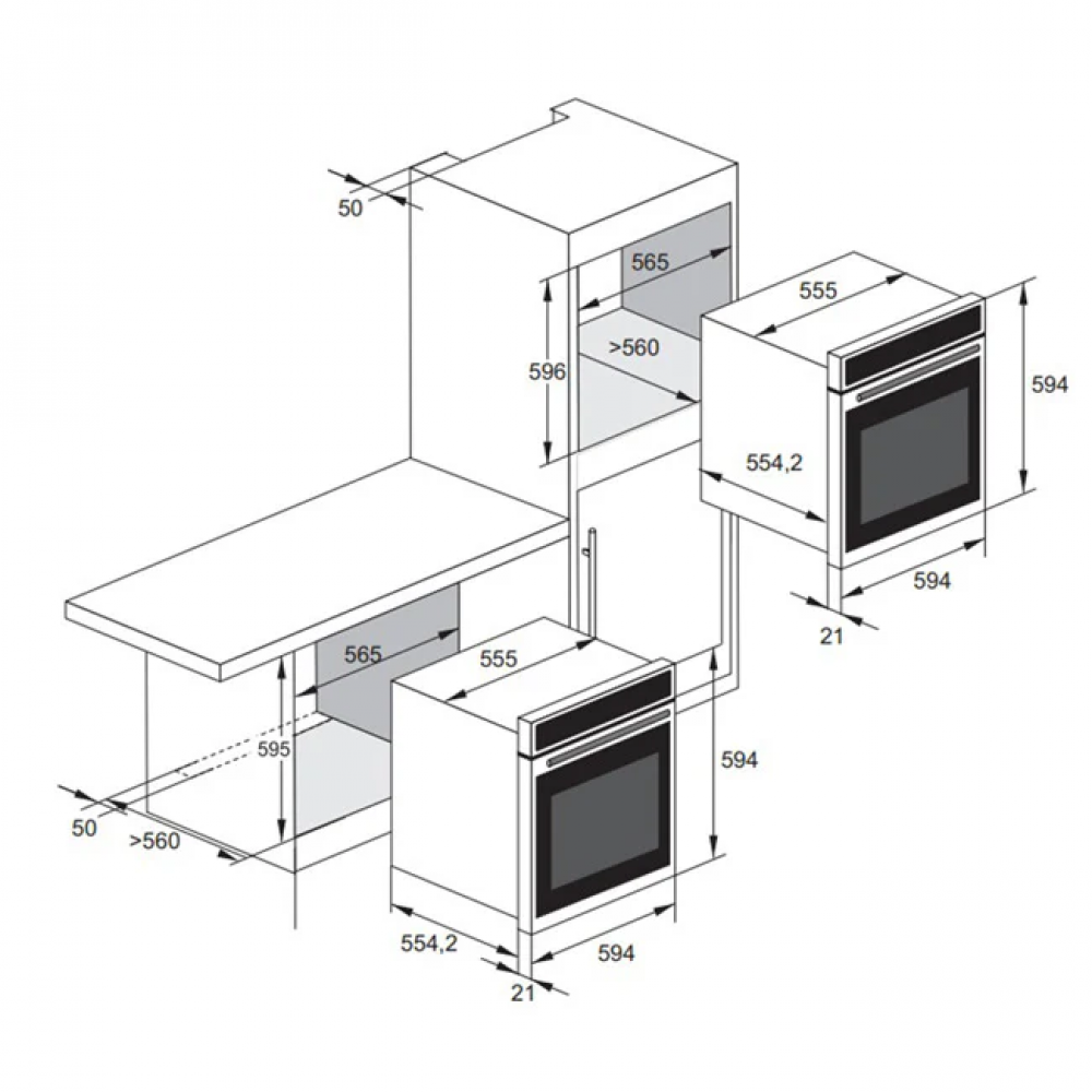 - Габариты прибора (ВхШхГ): 594х594х575 мм
