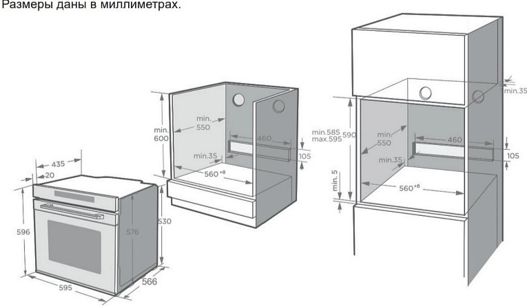 - Размеры встраивания (ВхШхГ): 590х560х550 мм