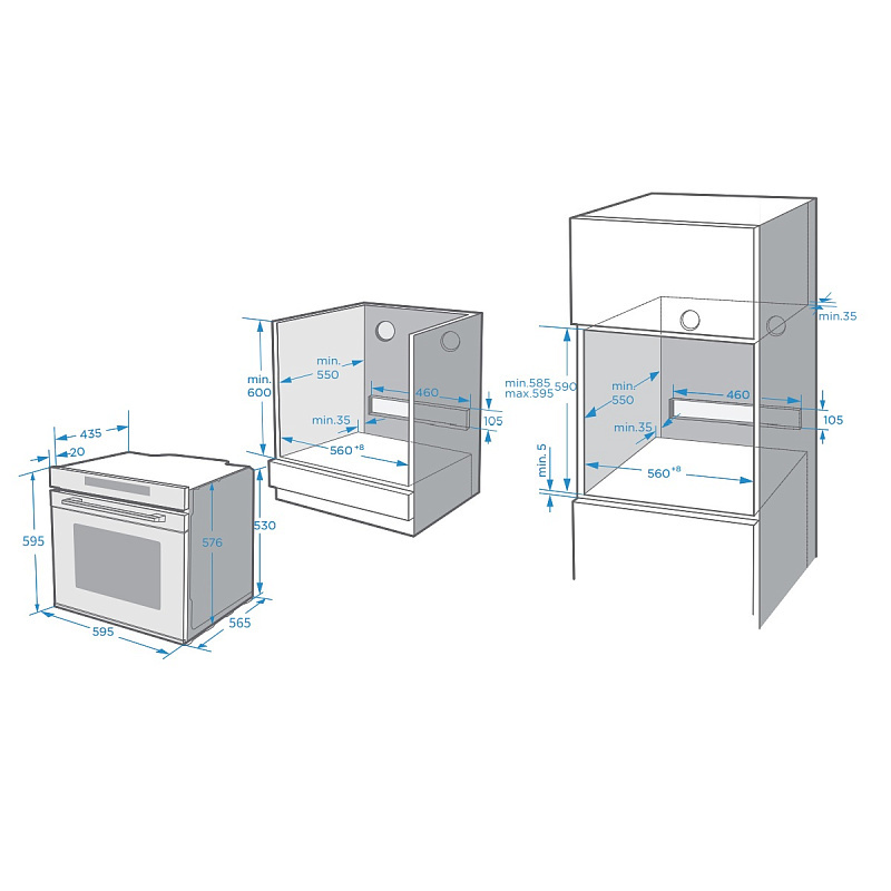 - Размеры встраивания (ВхШхГ) (мм): 590х560х550