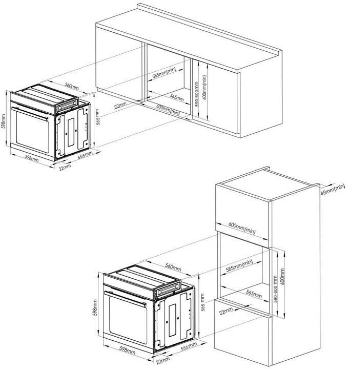 - Размеры встраивания (ВхШхГ): 600х565х585 мм
