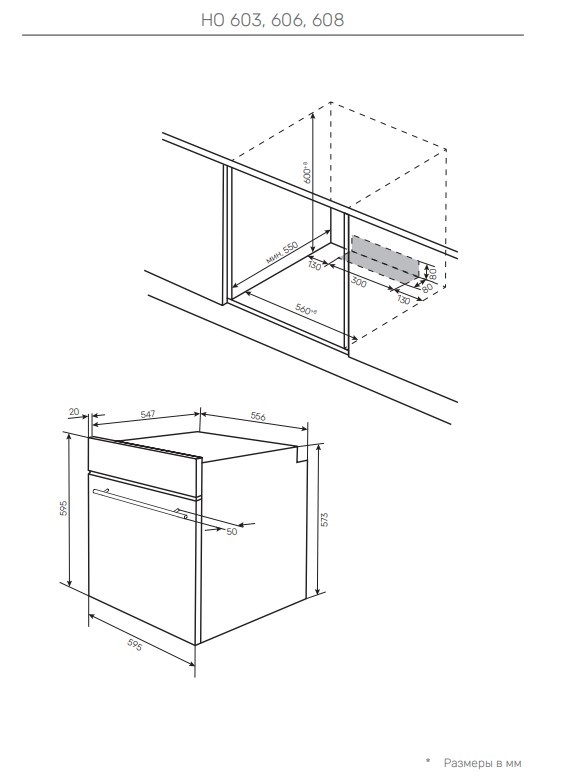 - Размер ниши для встраивания (ВхШхГ): 600х560х550 мм