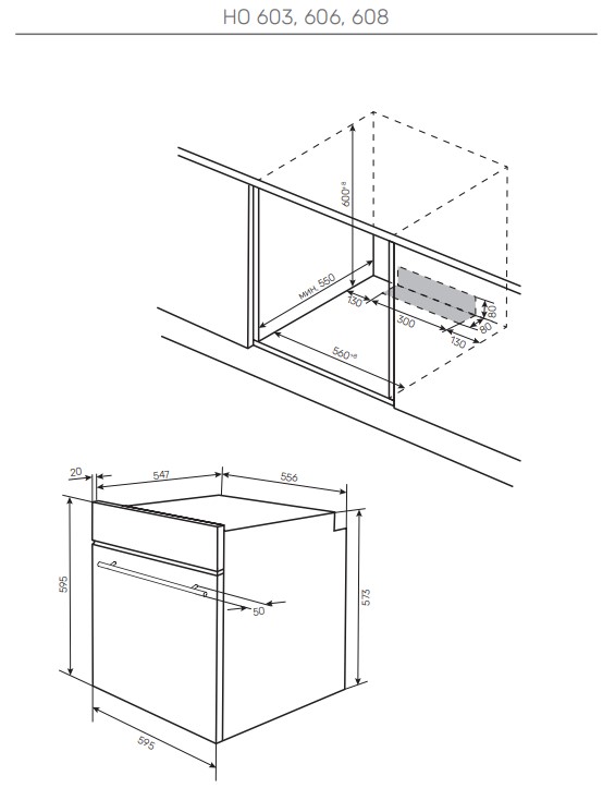 - Размер ниши для встраивания (ВхШхГ): 600х560х550 мм