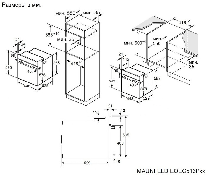 - Размеры ниши для встраивания (ВхШхГ): 600х418х550 мм