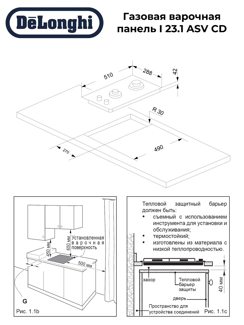 Газовая варочная панель Delonghi I 23.1 ASV CD