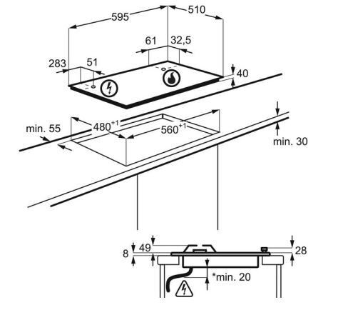 - Размеры для встраивания (ШхГ): 560x480 мм