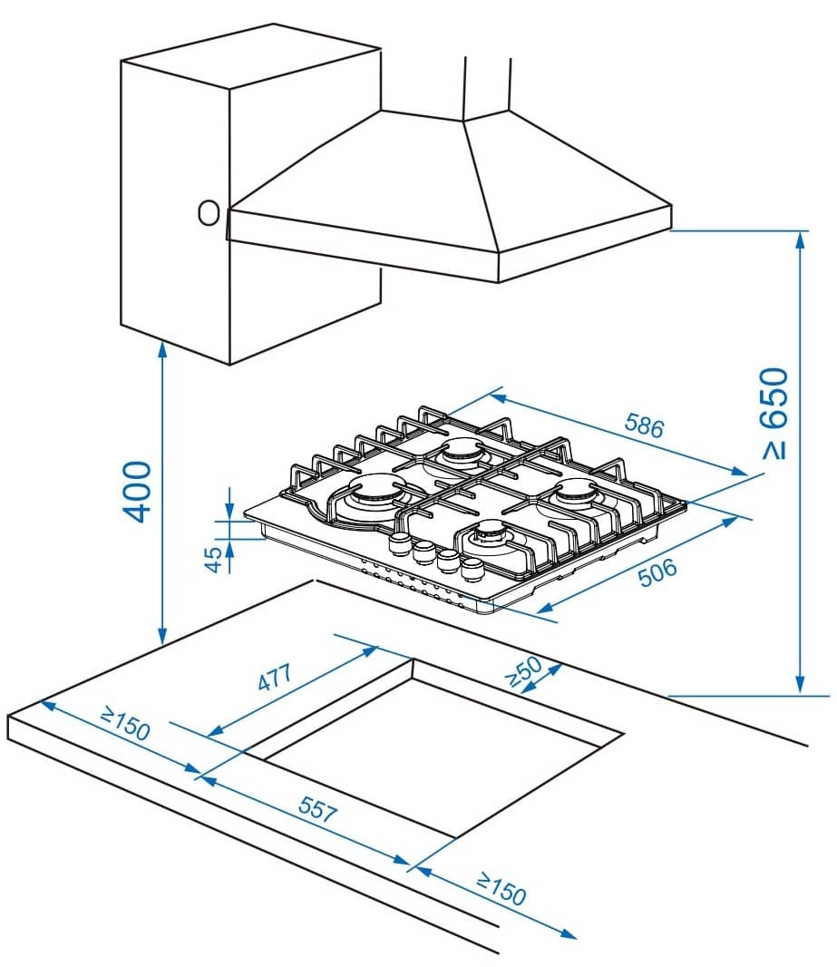 - Размеры ниши для встраивания (ШхГ): 557х477 мм