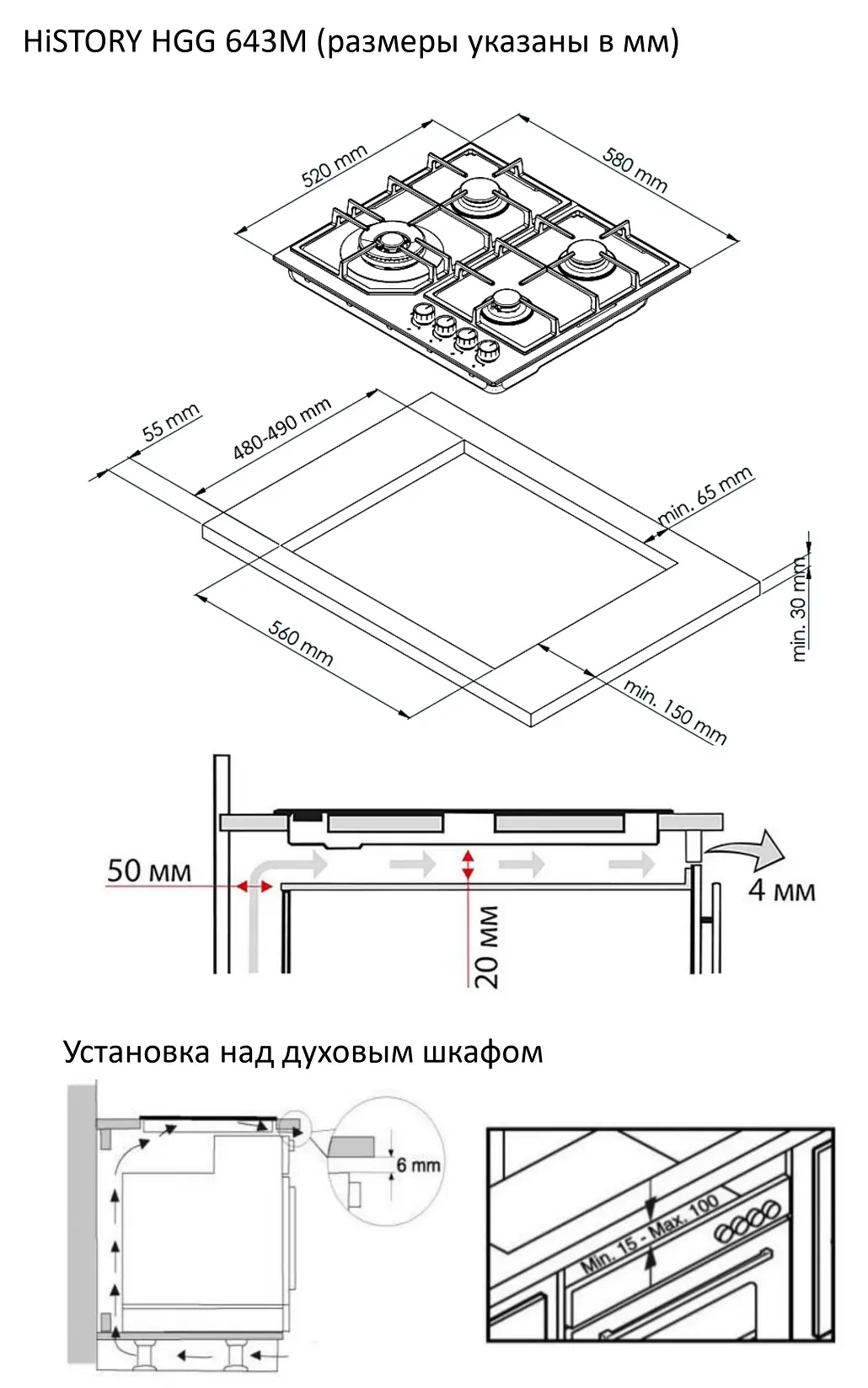 - Размер ниши для встраивания (ВхШхГ): 100х560х490 мм