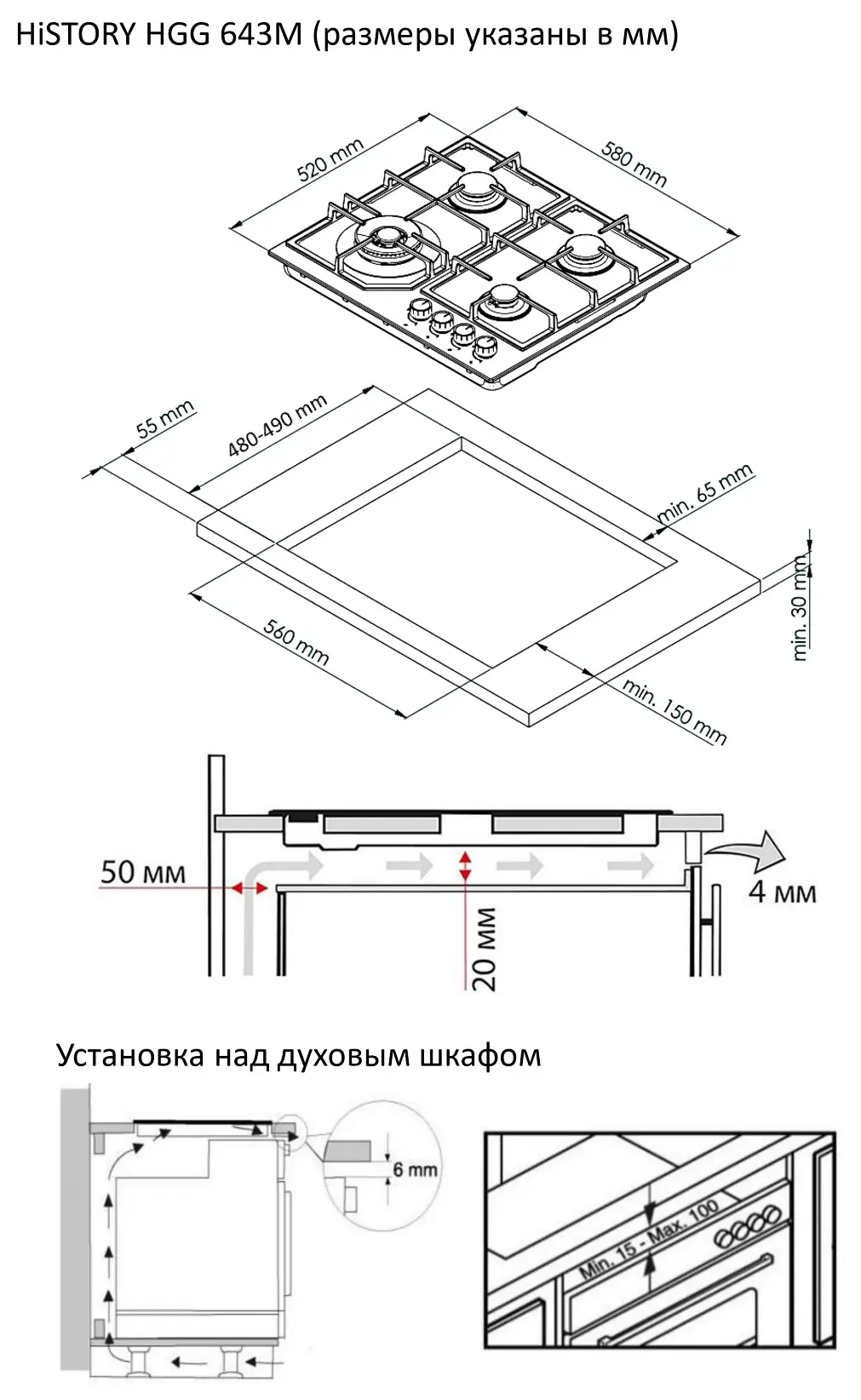 - Размер ниши для встраивания (ВхШхГ): 100х560х490 мм