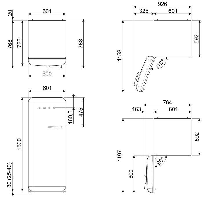 - Габариты прибора (ВхШхГ): 1530х601х728 мм