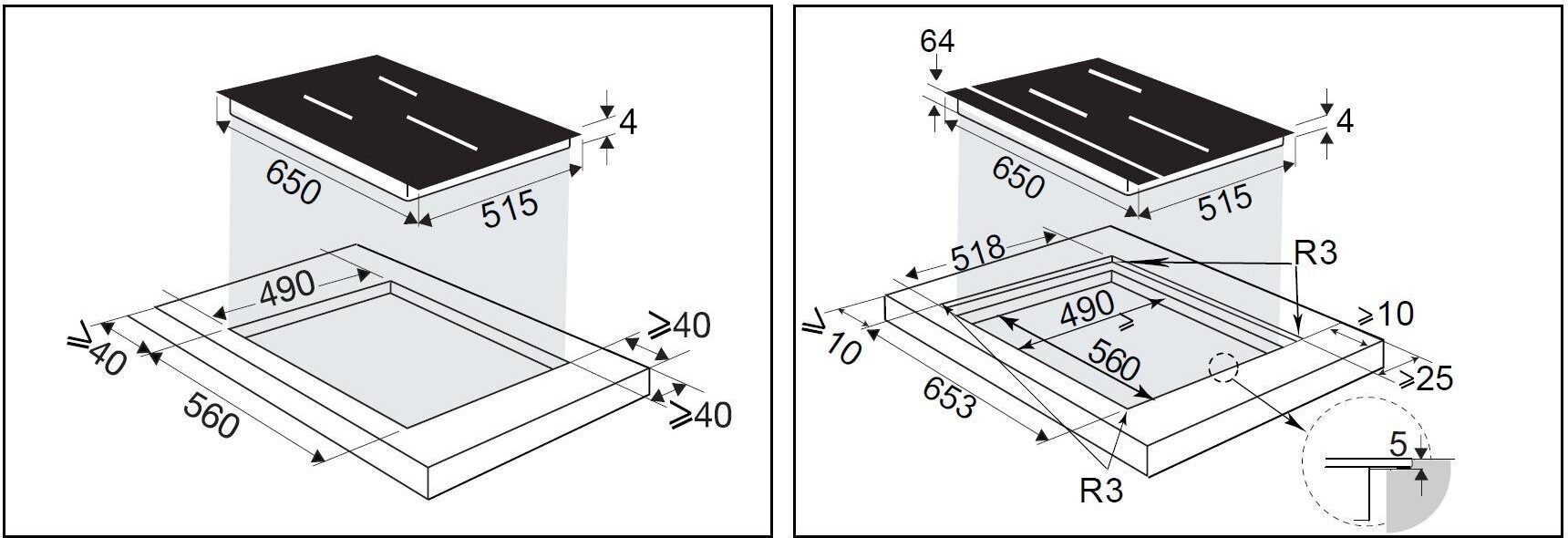 - Размеры ниши для встраивания (ШхГ): 560х490 мм