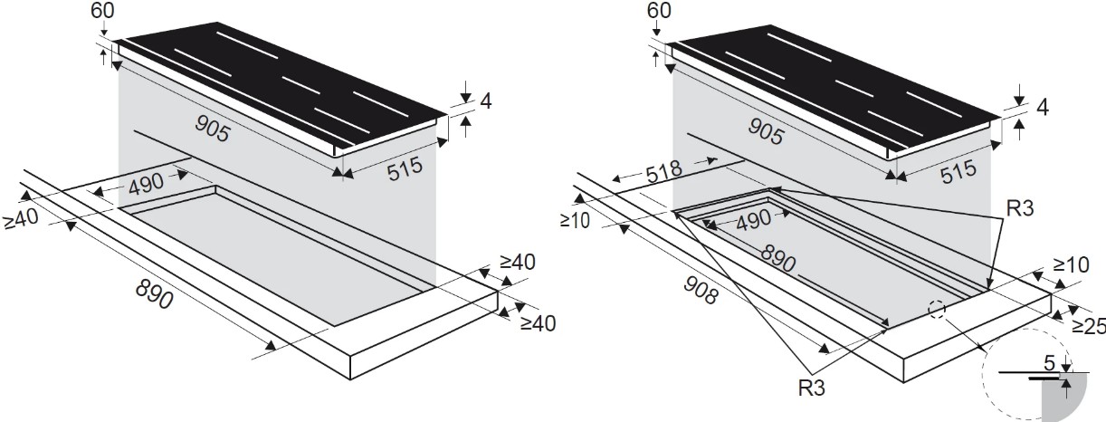 - Размеры ниши для встраивания (ШхГ): 900х490 мм