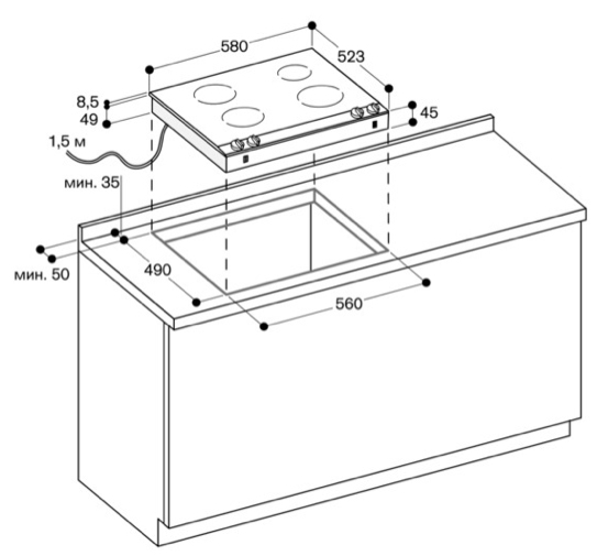 - Габариты ниши для встраивания (ШхГ): 560х490 мм