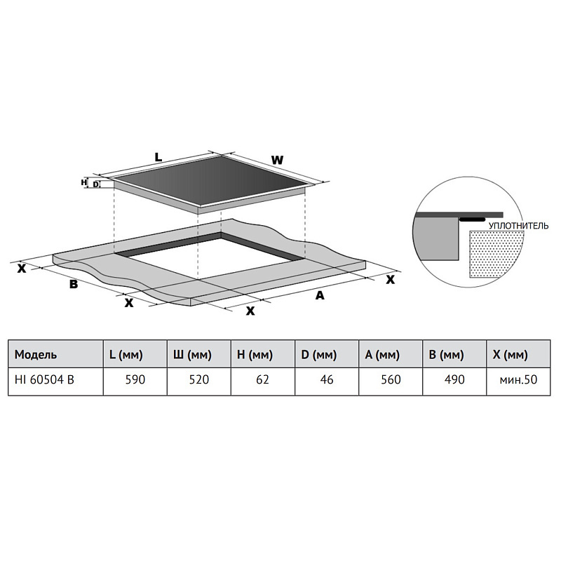 - Размеры ниши для встраивания (ШxГ): 560х490 мм