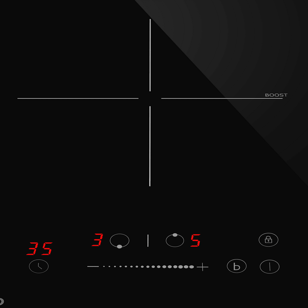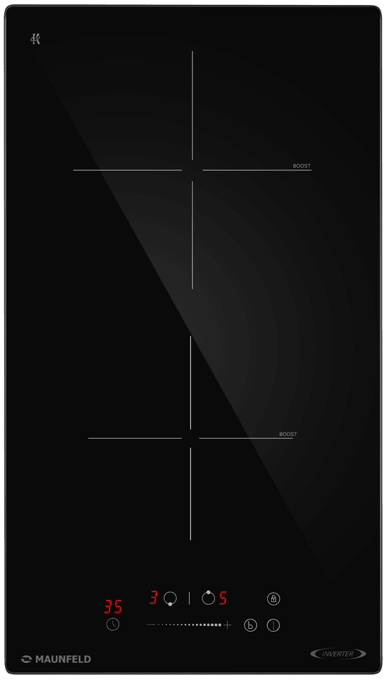 - Мощность конфорок: 1х1200 Вт (буст 1500), 1х1800 Вт (буст 2000)