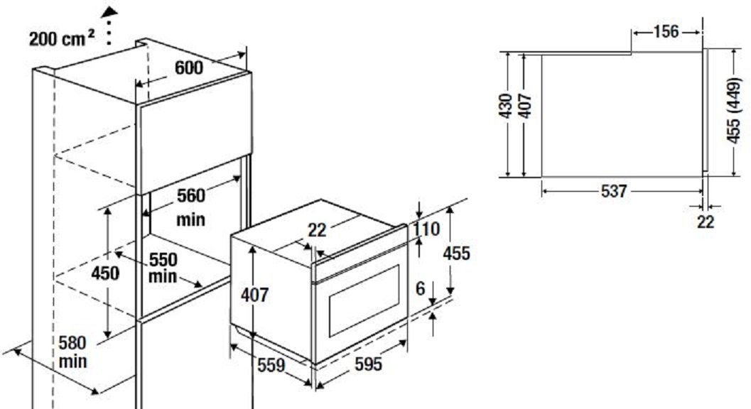- Габариты ниши для встраивания (ВхШхГ) 450х560х550 мм