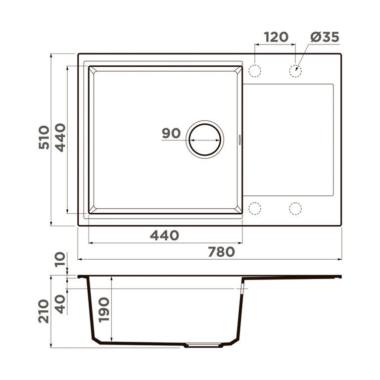 - Тип мойки: Кухонная мойка с одной чашей и крылом