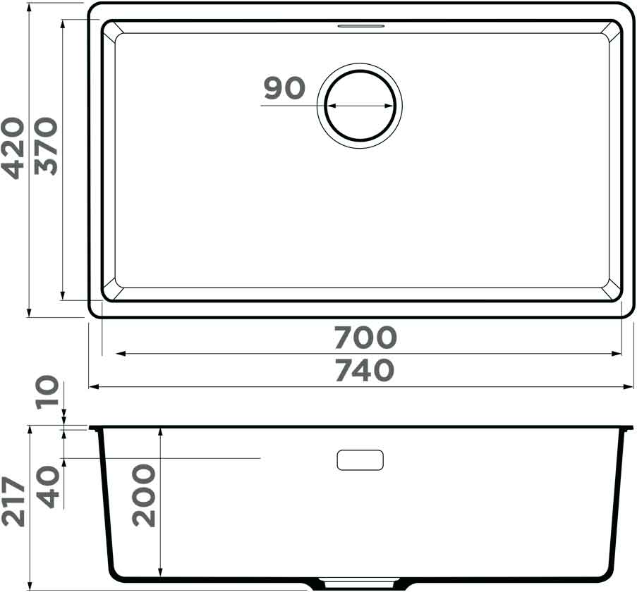 - Размер мойки (ШхГ): 740х420 мм