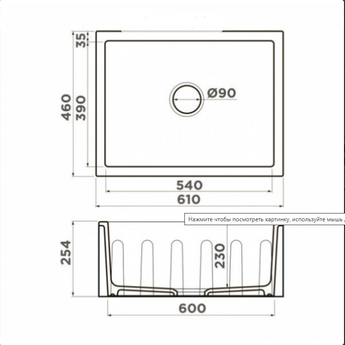 - Размер чаши (ШхД): 540х390 мм