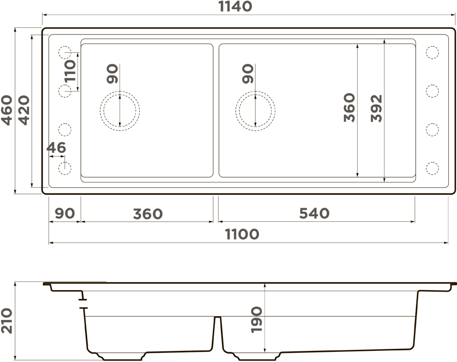 | Размер мойки (ШxГ) | 1140х460 мм |