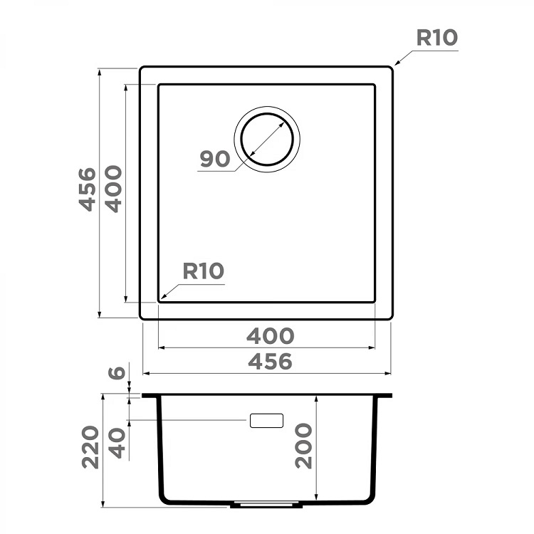- Размер мойки (ВхШхГ): 200х456х456 мм
