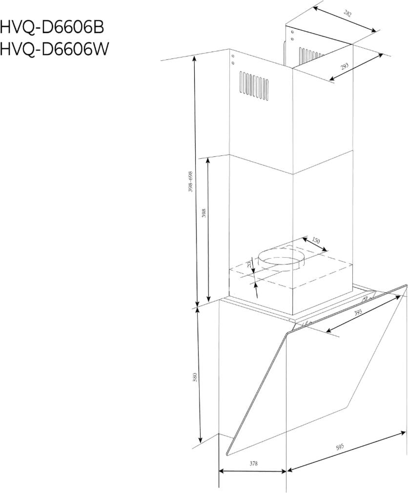 | Размеры вытяжки (ВхШхГ) | 380х595х378 мм |