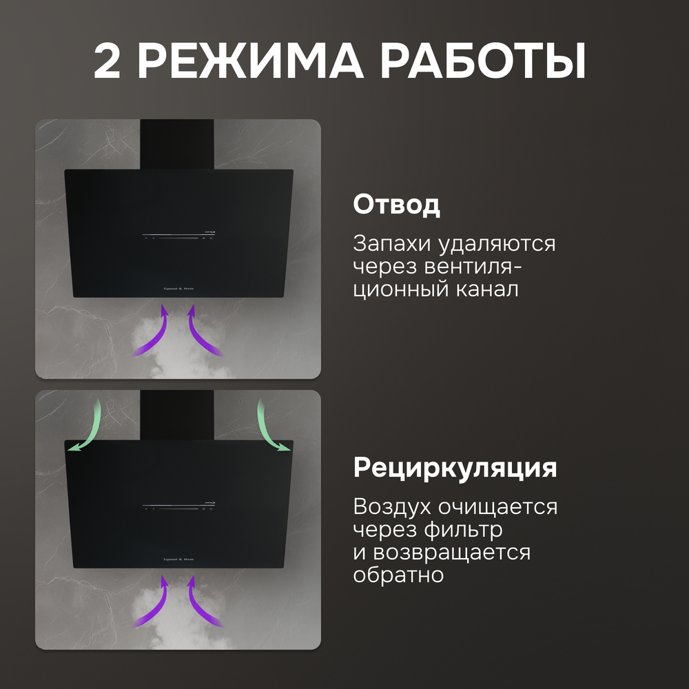 - Режим работы: Отвод/рециркуляция