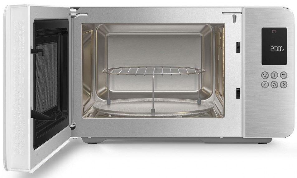 - 4 режима работы: Микроволновка, гриль, поддержание тепла и разморозка — с возможностью ручной или автоматической настройки в зависимости от блюда