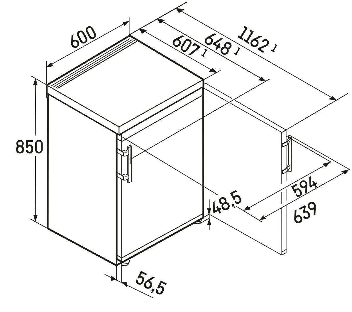 - Габариты прибора (ВхШхГ): 850х600х607 мм