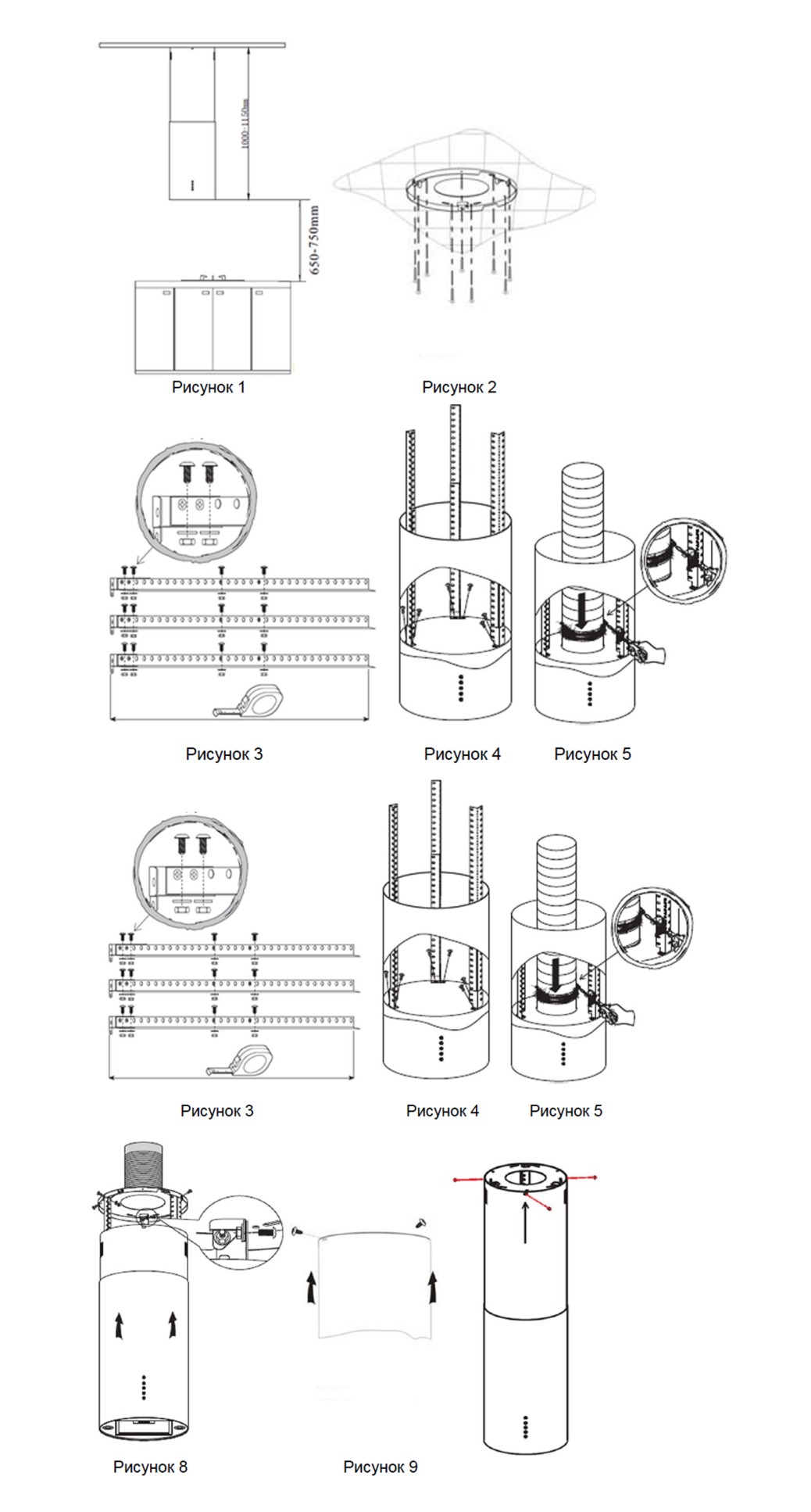 | Размеры вытяжки (ВхШхГ) | 600-1170х350х350 мм |