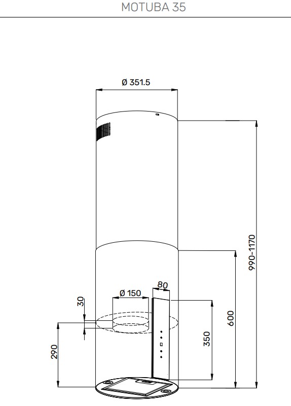 | Размеры вытяжки (ВхШхГ) | 990х351х351 мм |