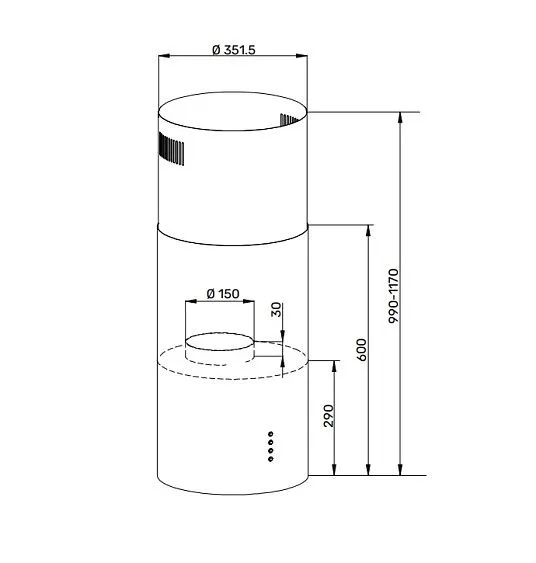 | Размеры вытяжки (ВхШхГ) | 990х351х351 мм |