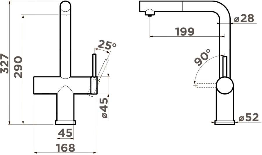 - Особенности: Выдвижной излив / гибкий излив / встроенный кран для питьевой воды