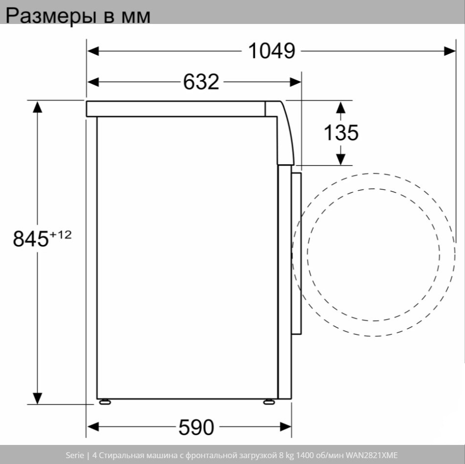 | Размеры стиральной машины (ВхШхГ) | 845х598х590 мм |