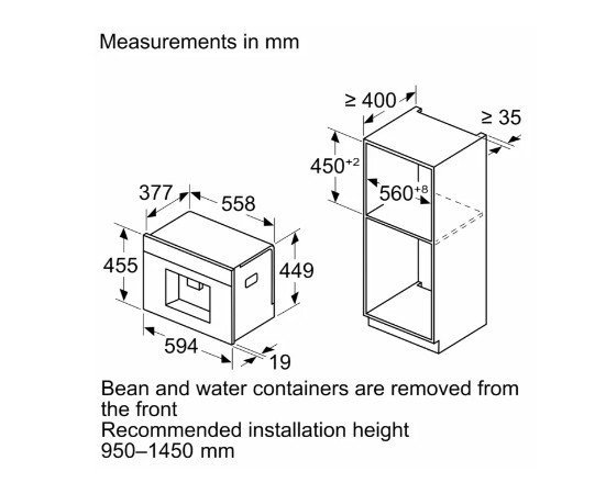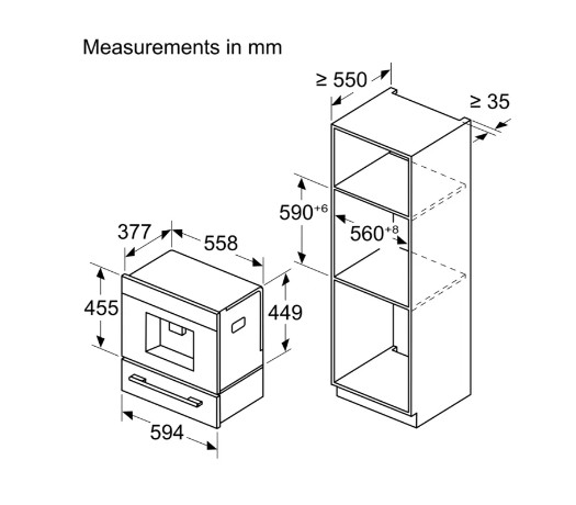 - Габариты ниши для встраивания(ВxШxГ): 450-452х560-568х400 мм