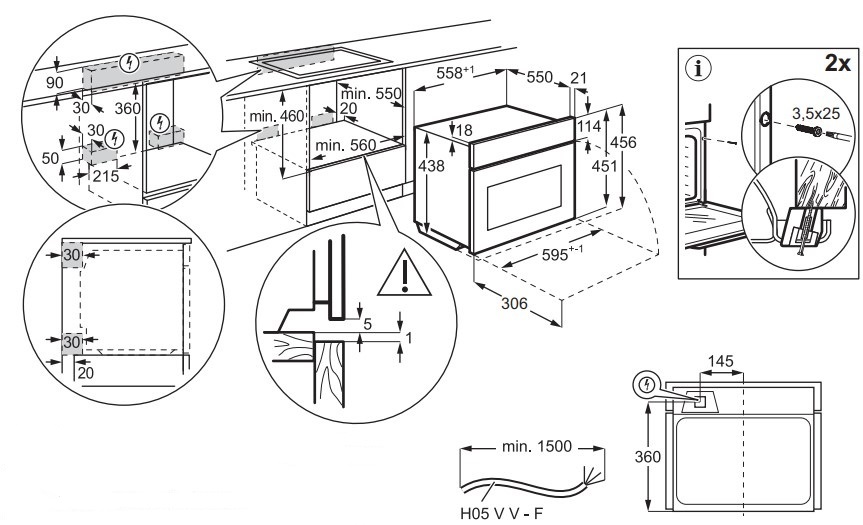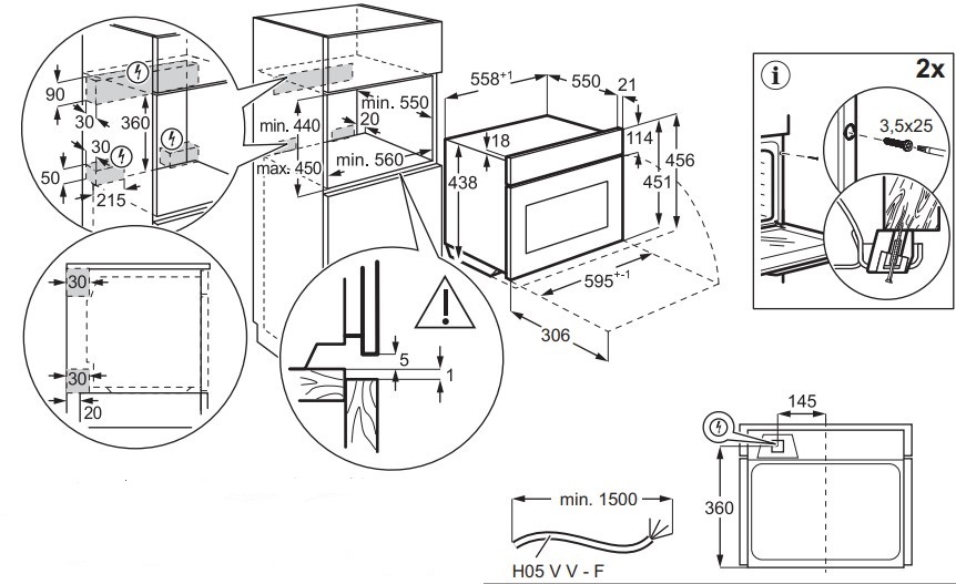 - Размер ниши для встраивания (ВхШхГ): 450х560х550 мм