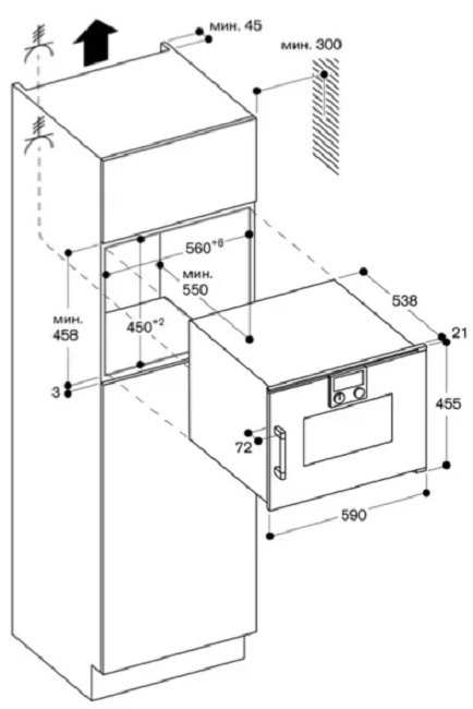 - Габариты ниши для встраивания (ВхШхГ): 488х560х550 мм