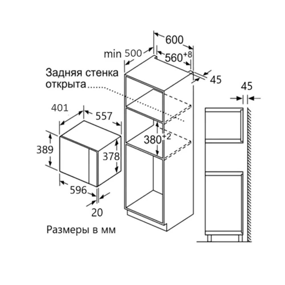 - Размер ниши для встраивания (ВхШхГ): 382х568х500 мм