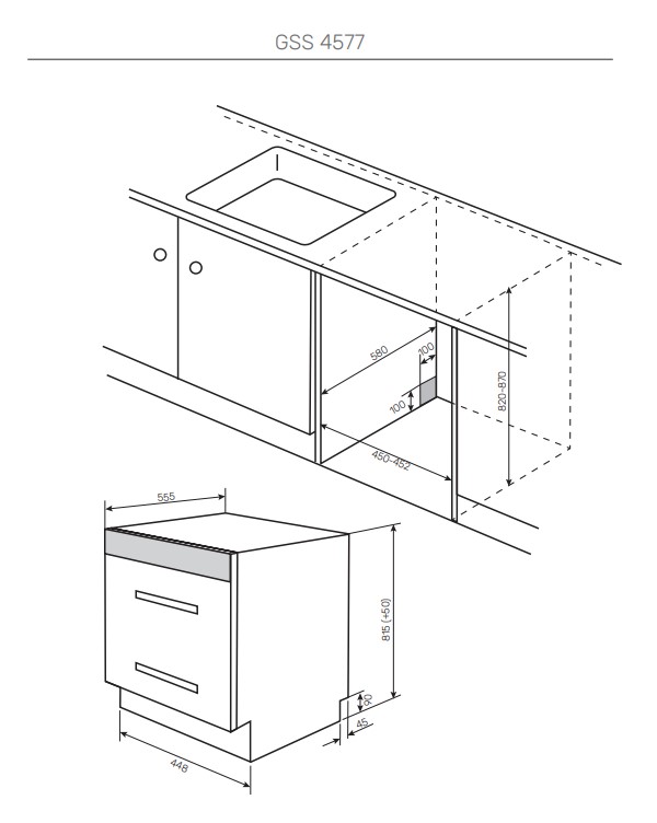 - Габариты ниши для встраивания (ВхШхГ): 820х450х580 мм