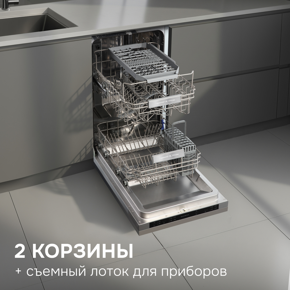 - Функциональные особенности: Корзина + съемный лоток для приборов