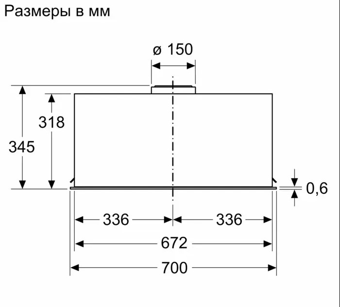 | Размеры вытяжки (ВхШхГ) | 345x700x282 мм |