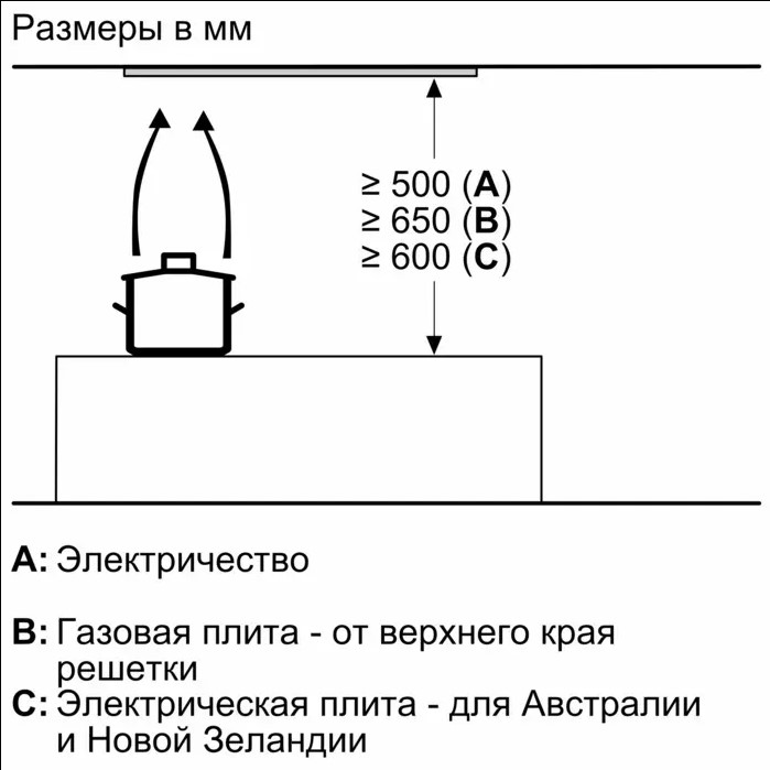 - Минимальное расстояние от газовой поверхности: 65 см