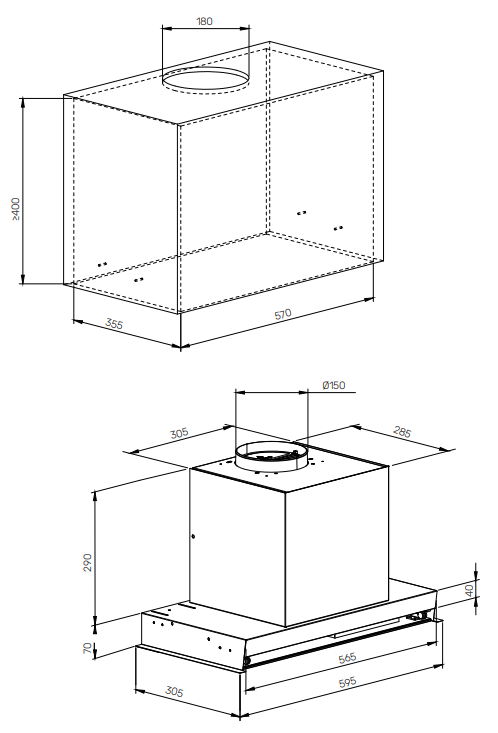 | Размеры вытяжки (ВхШхГ) | 360х600х305 мм |