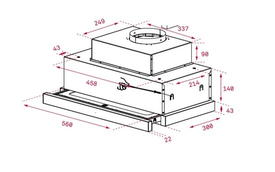 - Выдвижная вытяжка, передняя часть из нержавеющей стали с защитой от отпечатков пальцев
