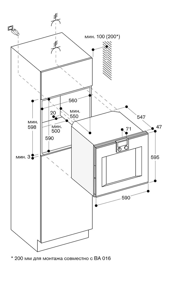 - Размеры ниши для встраивания (ВхШхГ): 590x560x550 мм